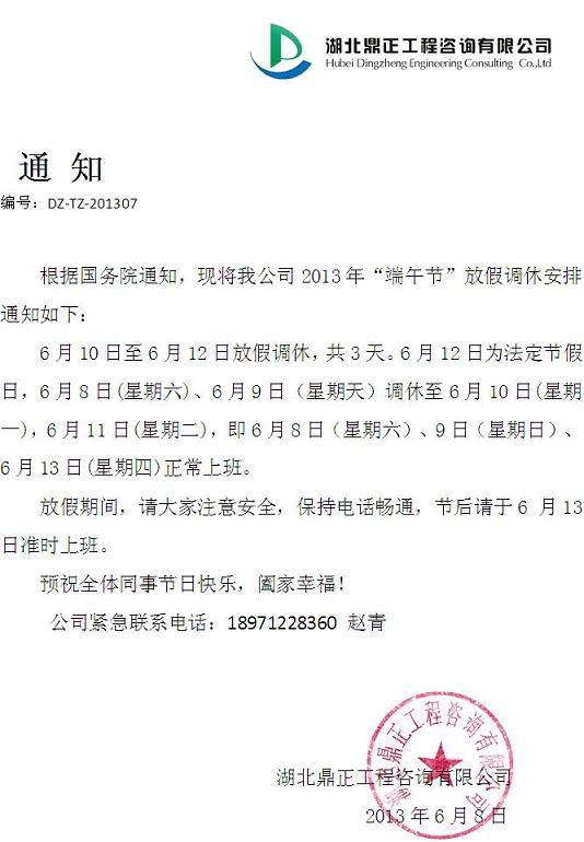 2013年“端午節”放假通知