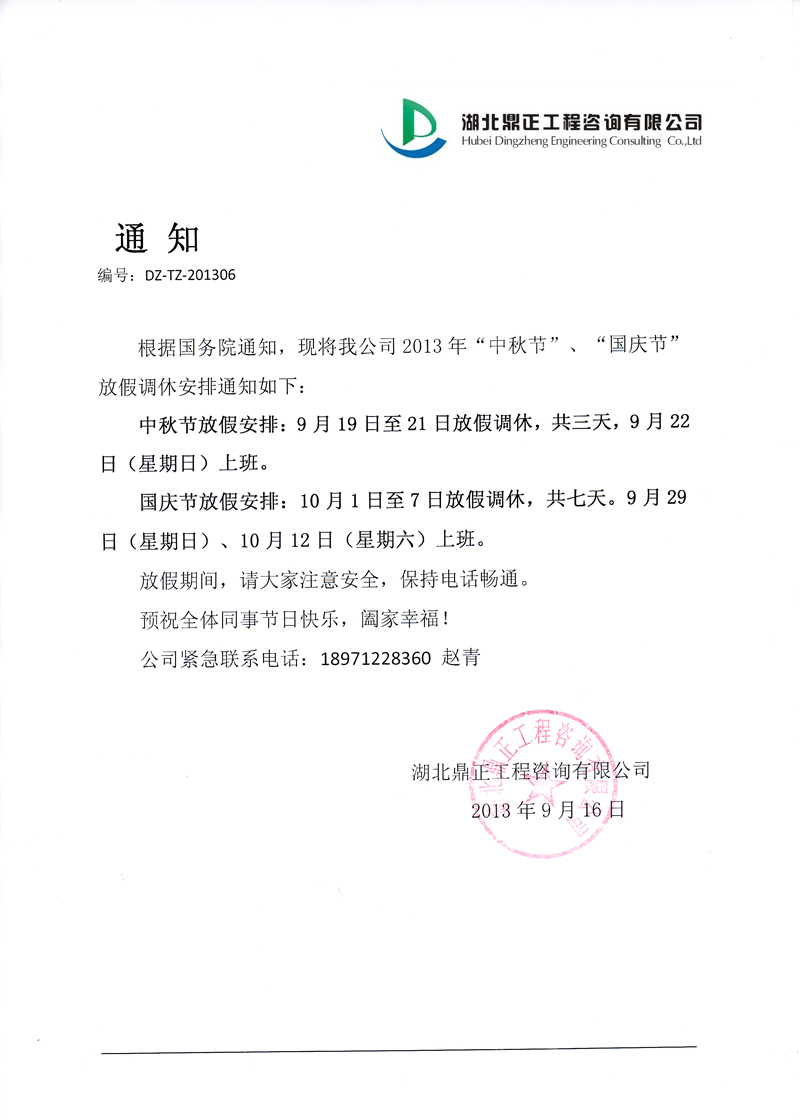2013年“中秋國慶節”放假通知