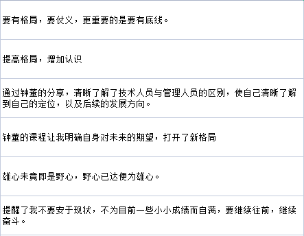 開堂的第一節(jié)課,他以《打開企圖心》為主題,以提問為主的方式,激發(fā)線上線下的學員深入思考:我們?yōu)楹味鴬^斗?我們因何而得到?既不是秀才(編者注:此語境下的含義為生活優(yōu)渥者)也不是落榜者(編者注:此語境下的含義為因失敗而發(fā)憤圖強者)的我們又當以什么作為自身前進的動力?……