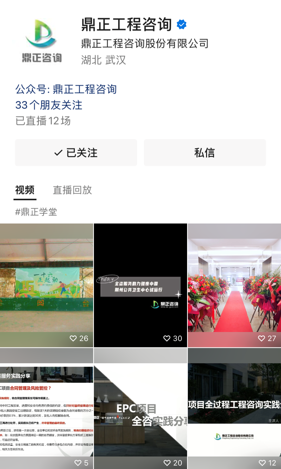 關注“鼎正工程咨詢”視頻號,點擊查看直播回放。