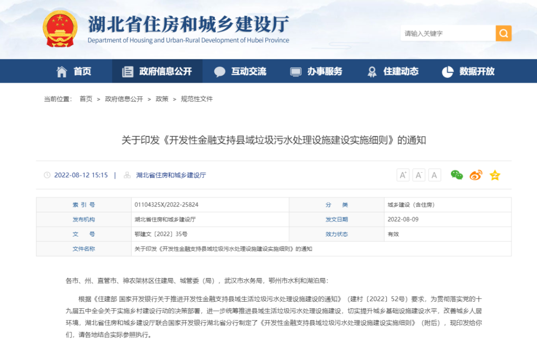 湖北省《開發性金融支持縣域垃圾污水處理設施建設實施細則》