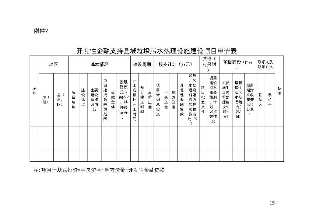 2.開發性金融支持縣域垃圾污水處理設施建設項目申請表