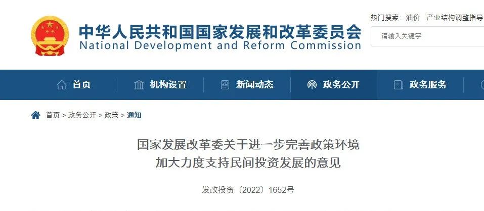 1.國家發展改革委發布進一步完善政策環境加大力度支持民間投資發展的意見
