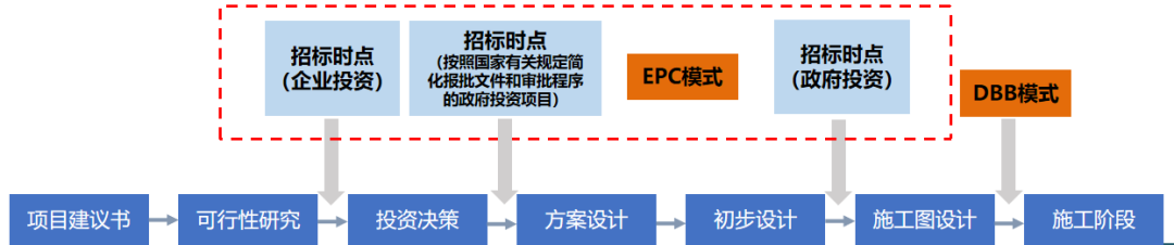 基于國內(nèi)“弱信任”的市場環(huán)境,政府投資項目以初步設(shè)計為招標(biāo)節(jié)點,從而將EPC項目的設(shè)計分為招標(biāo)前和招標(biāo)后兩階段,第一個階段是業(yè)主委托設(shè)計院進(jìn)行方案設(shè)計和初步設(shè)計,第二階段是總承包商中標(biāo)后進(jìn)行施工圖設(shè)計。