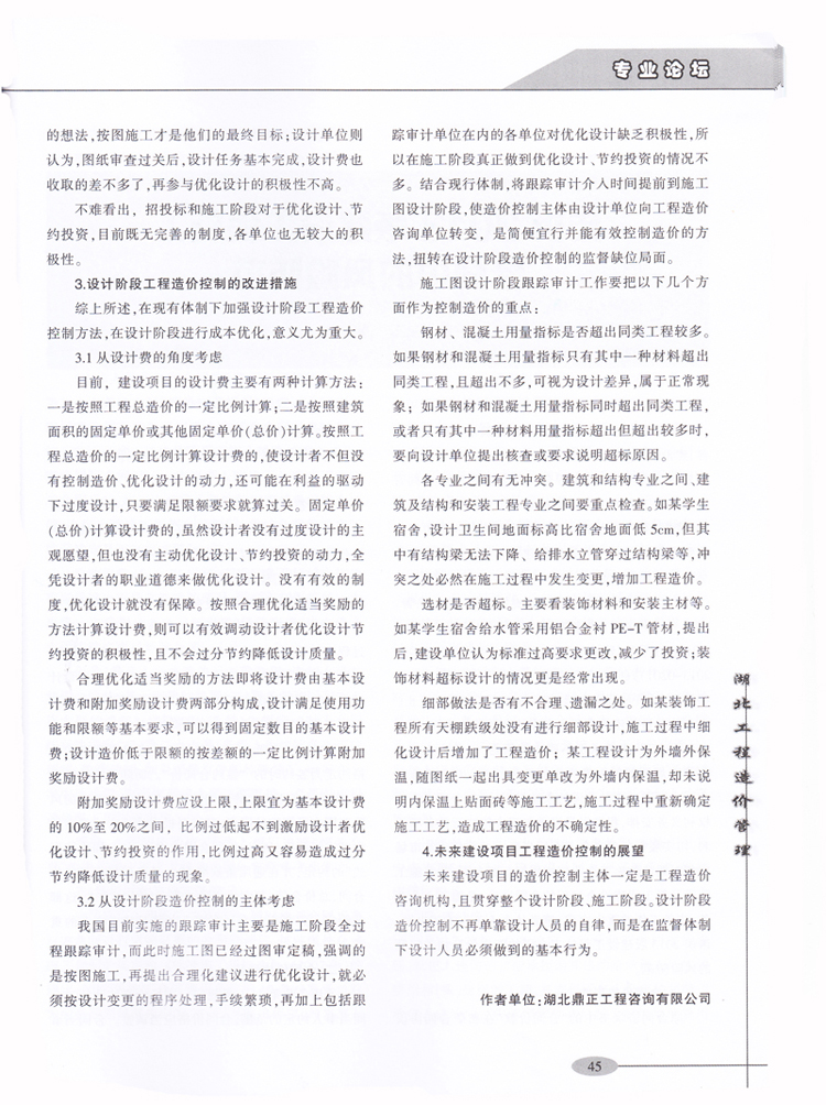 祝賀我司李光洲同志所著文章《淺談建設項目在設計階段的造價控制》在全國工程造價管理類優秀期刊《湖北工程造價管理》2014年第4期“專業論壇”板塊發表。