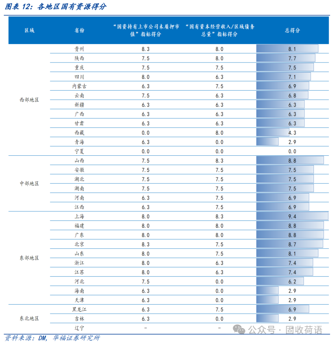 (2)中部地區(qū)的化債資源整體較一般,可結(jié)合自身優(yōu)勢充分利用各類資源緩解債務(wù)風險。例如,安徽可以利用其豐富的上市國企資源進行化債。