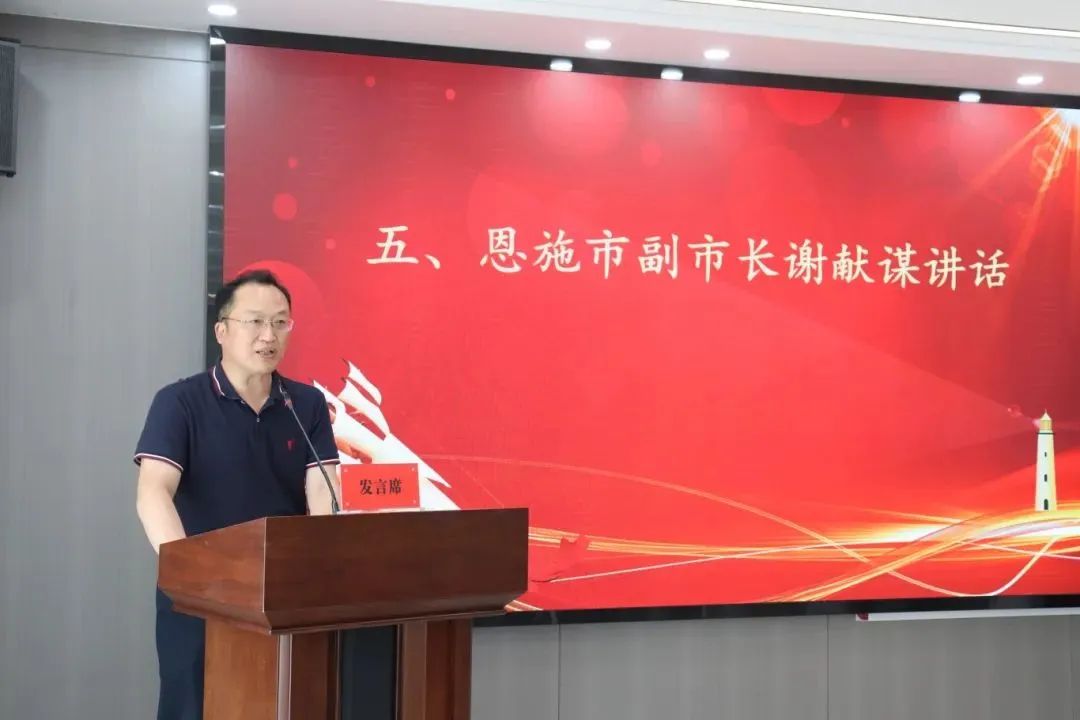 武漢大學(xué)恩施校友會(huì)會(huì)長田宗仁、鼎正工程咨詢有限公司董事長王雁然、恩施千湖之省食品有限公司副總經(jīng)理嚴(yán)潛、恩施市副市長謝獻(xiàn)謀、馬艷、武漢大學(xué)恩施校友會(huì)校友代表及白果樹村鄉(xiāng)賢代表參加儀式。