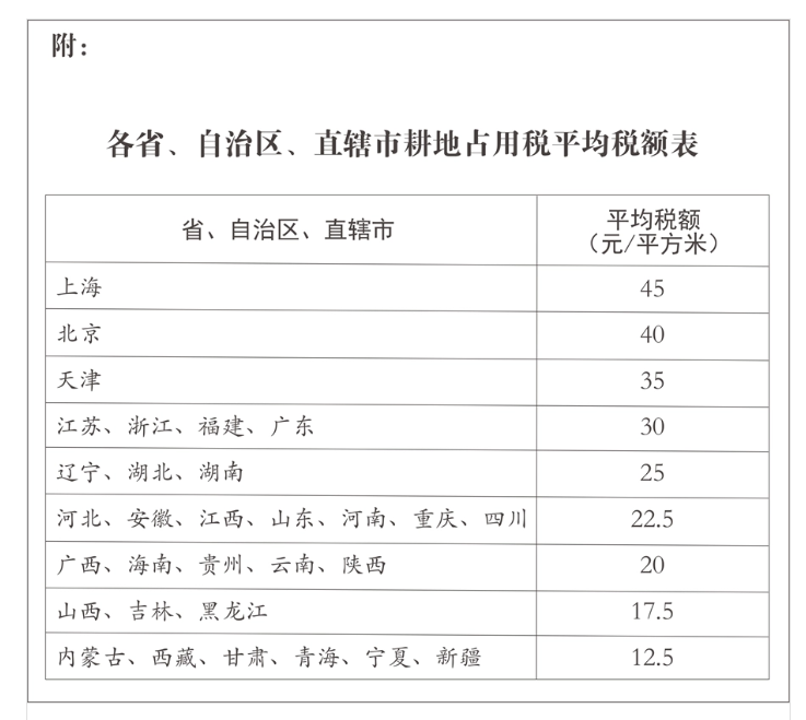 ▲各省、自治區(qū)、直轄市耕地占用稅平均稅額表
