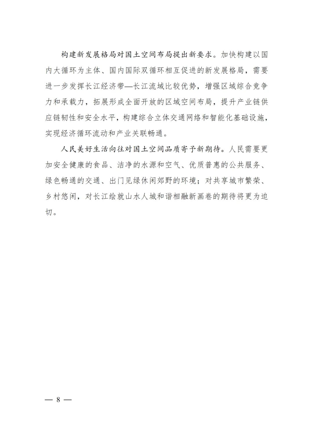 2024年2月9日,《長江經濟帶—長江流域國土空間規劃(2021—2035年)》經國務院批復同意。9月10日,自然資源部正式印發《長江經濟帶—長江流域國土空間規劃(2021—2035年)》。規劃范圍包括長江經濟帶11個省(市)全域,以及《長江保護法》規定的長江流域其他8省(區、市)的相關縣級行政區域,共計1173個縣級行政區域。規劃范圍包括陸域國土和內水、領海。其中,陸域面積240萬平方公里。(后附規劃范圍詳細表格)規劃期限為2021年至2035年。