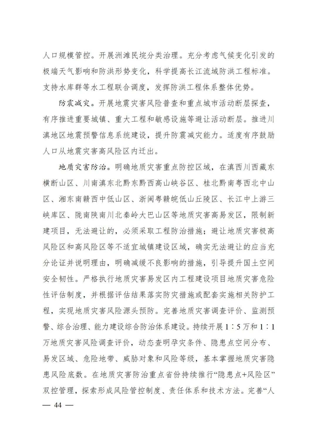 推進地震、洪澇、地質災害、沿海風暴潮、極端氣候事件等自然災害綜合防治體系建設,提高基礎設施安全性、可靠性,增強城市應對強降雨引發的洪澇災害能力,提升應對氣候災害能力和韌性。構建區域型、分布式、網絡化的應急設施、防災減災救災設施和救援設施體系。