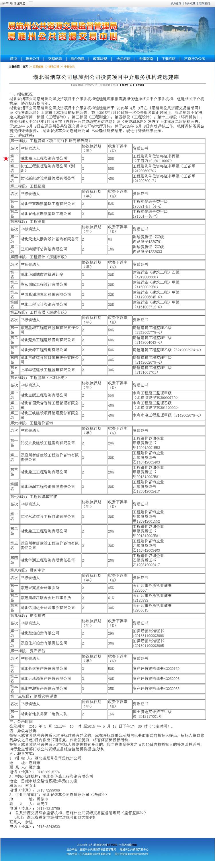 【經營成果】我司入選湖北省煙草公司恩施州公司投資項目工程咨詢中介服務機構庫
