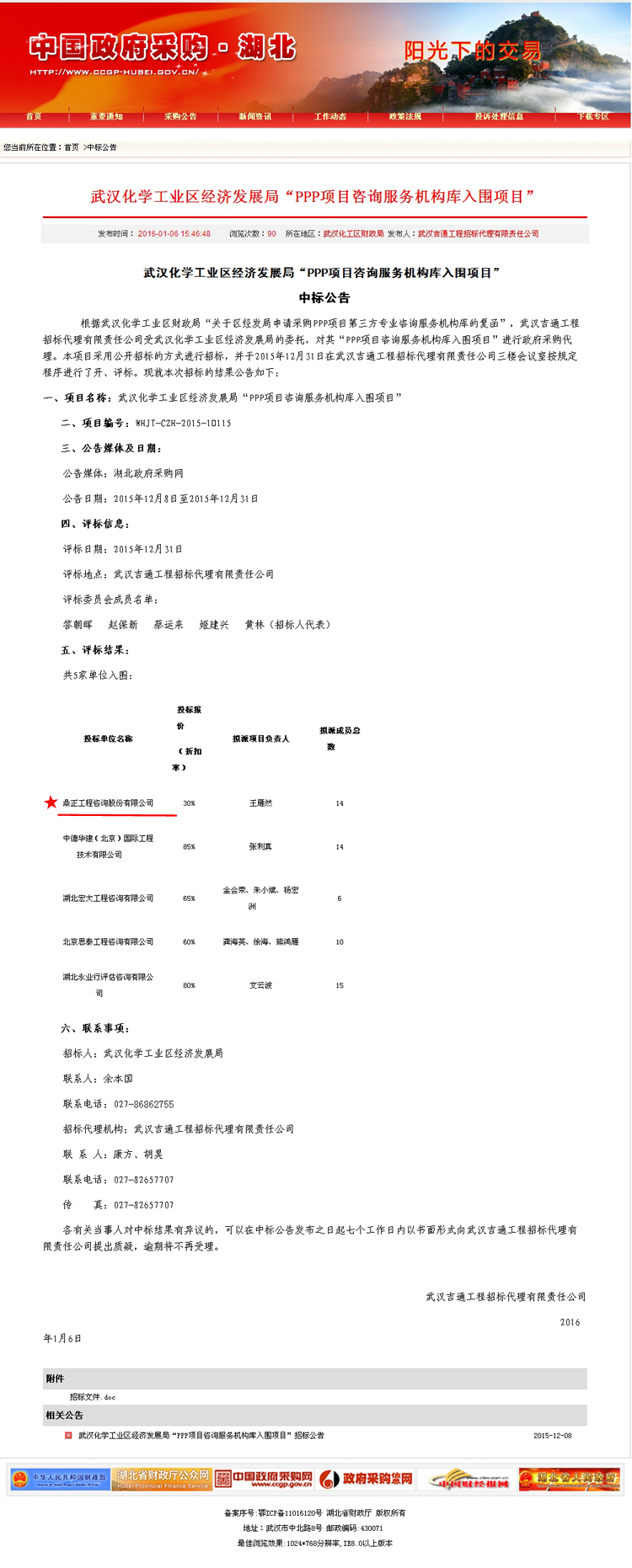 【經(jīng)營成果】我司入圍武漢化學(xué)工業(yè)區(qū)經(jīng)濟發(fā)展局“PPP項目咨詢服務(wù)機構(gòu)庫”