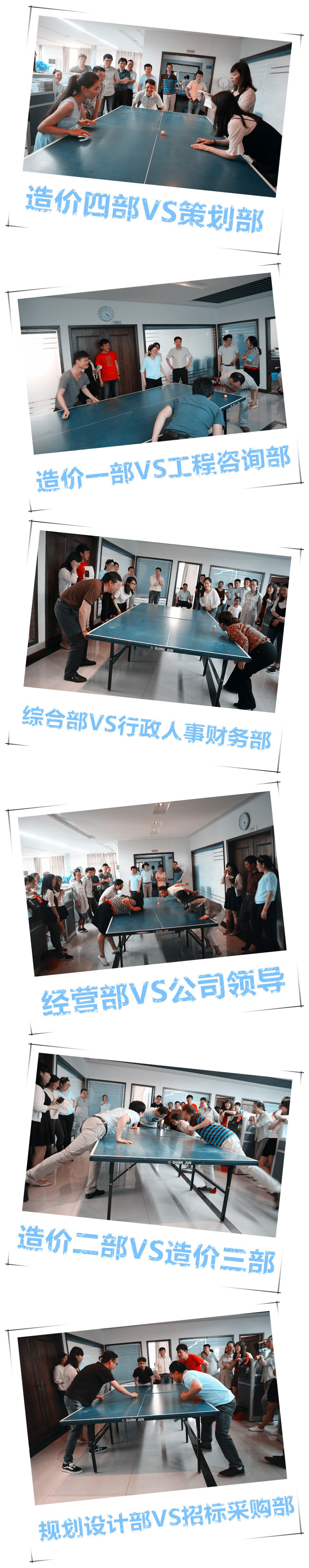 第二場比賽“你吹我呼”要求部門間兩兩對決,限時一分鐘,以乒乓球臺中線為界,雙方需要用嘴將乒乓球吹到對方陣地,從對方陣地上滑落到地上,可贏一分。伴隨著熱烈歡呼與吶喊,現場氣氛一再升溫。