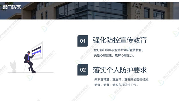 分批返崗、線上線下結合辦公,鼎正人的復工準備工作正有序進行。在疫情防控、復工復產兩手抓的同時,鼎正咨詢將一如既往地為客戶提供專業的全過程工程咨詢服務