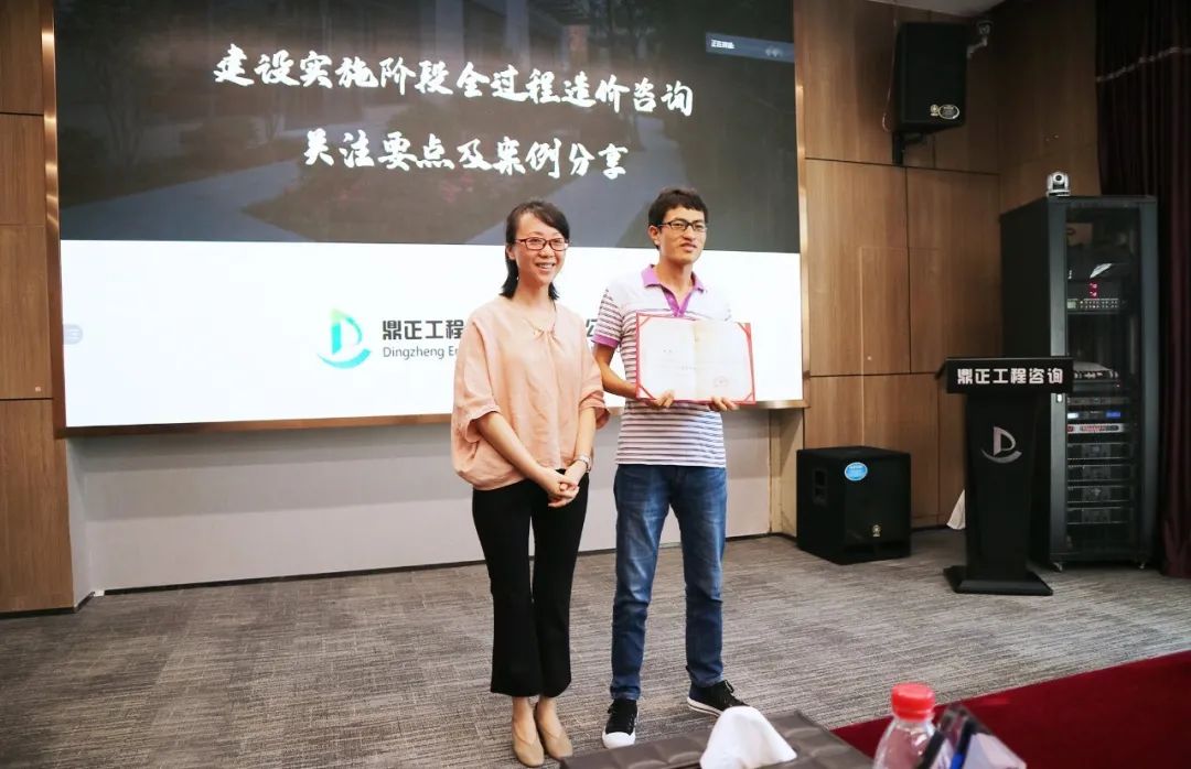 在交流會尾聲,鼎正技術總監朱立冬、副總經理毛迎霞為鼎正荊州分公司技術負責人李素娟、項目經理沈雯頒發榮譽。